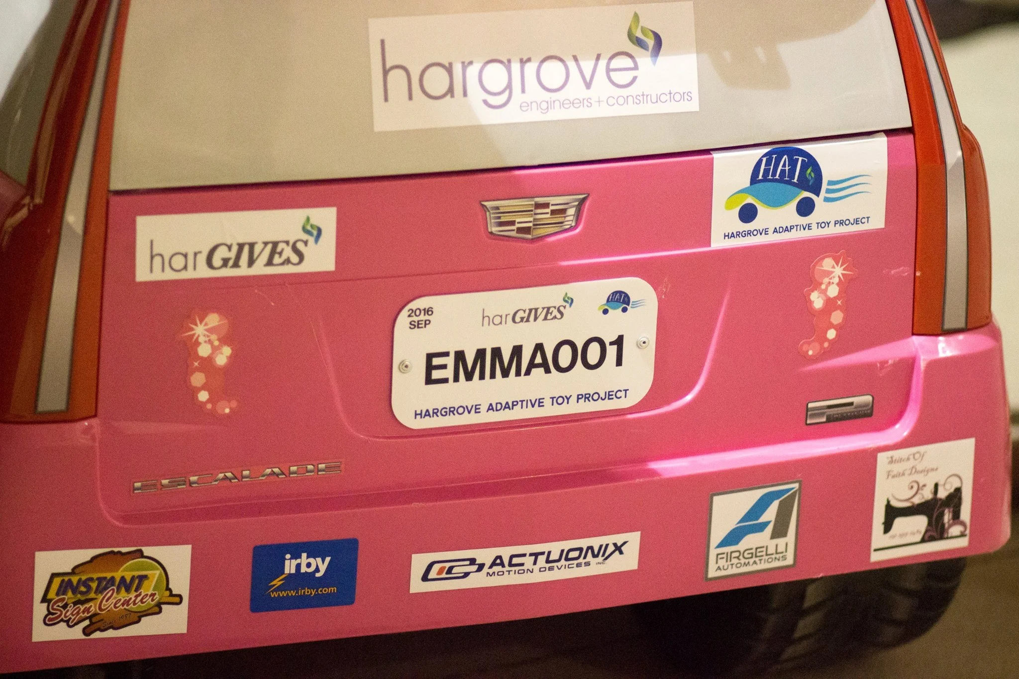 In 2017, the HAT Project will produce 10 EMMAs out of the Hargrove Mobile, AL location. The EMMAs will be awarded in the Spring and Fall to selected recipients. The adaptive toy cars will be given to the recipients at no cost. The HAT Project will expand to other Hargrove Office locations in the coming years.